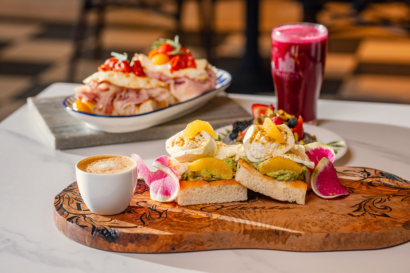 Enjoy casual Italian dining daily at Mercato di Vienza. Start your morning with Italian inspired breakfast favorites, then return later for fresh, wood fired pizza, creamy gelato, and refreshing drinks perfect for enjoying as you explore the grounds.